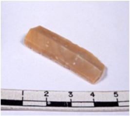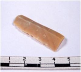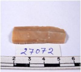 | Description / विवरण | A fragment of a rectangular shaped chert blade showing dorsal sides with sharp edges having smooth surface and triangular section. |