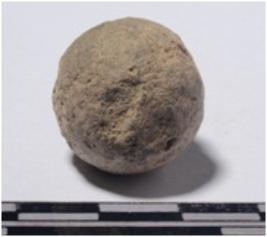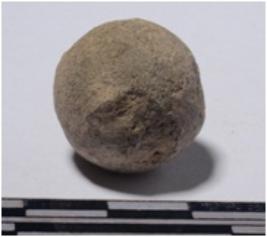 | Description / विवरण | A stone sling ball round in shape of rough surface. |