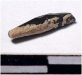 | Description / विवरण | A fragment of a stone drill bit circular in section pointed on one end of smooth surface. |