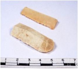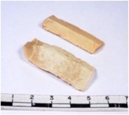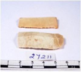 | Description / विवरण | A fragment of a rectangular shaped chert blade showing dorsal sides with sharp cutting edges having smooth surface and triangular section. |