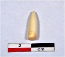 | Description / विवरण | A fragment of shell point showing conical in shaped, broken from upper part, having glossy surface. |