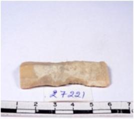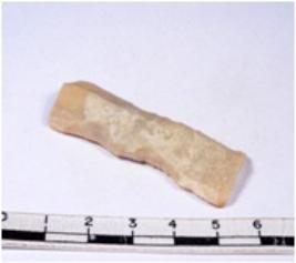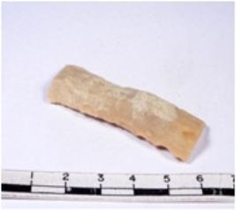 | Description / विवरण | A fragment of a rectangular shaped chert blade showing dorsal sides with sharp edges having smooth surface and triangular section. |