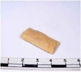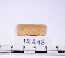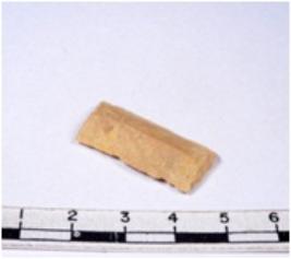| Description / विवरण | A fragment of a rectangular shaped chert blade showing dorsal sides with sharp cutting edges having smooth surface and triangular section. |