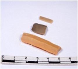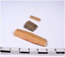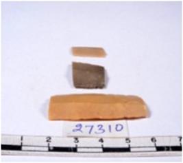 | Description / विवरण | A fragment of a rectangular shaped chert blade showing dorsal sides with sharp edges having smooth surface and triangular section. |