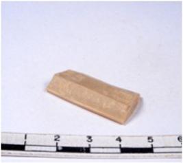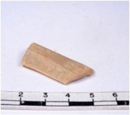 | Description / विवरण | A fragment of a rectangular shaped chert blade showing dorsal sides with sharp edges having smooth surface and triangular section. |
