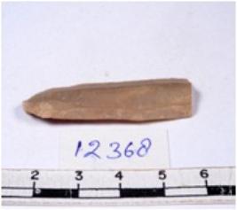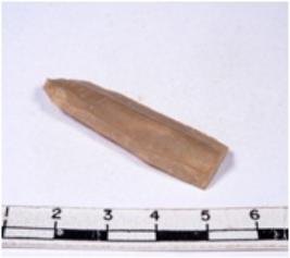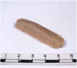 | Description / विवरण | A fragment of a rectangular shaped chert blade showing dorsal sides with sharp cutting edges having smooth surface and triangular section. |