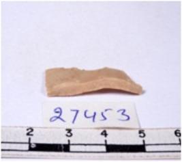 | Description / विवरण | A fragment of a rectangular shaped chert blade showing dorsal sides with sharp edges having smooth surface and triangular section. |