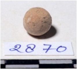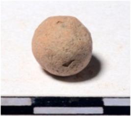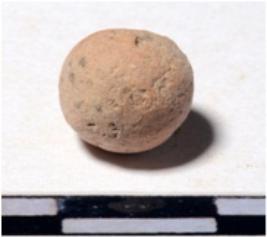 | Description / विवरण | A terracotta sling ball round in shape of smooth surface. |