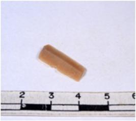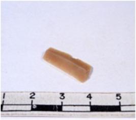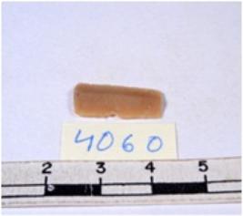 | Description / विवरण | A fragment of a rectangular shaped chert blade showing dorsal sides with sharp edges having smooth surface and triangular section. |