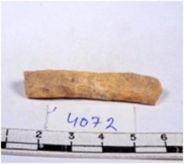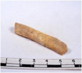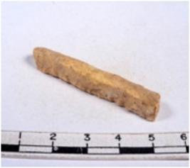 | Description / विवरण | A fragment of a rectangular shaped chert blade showing dorsal sides with sharp edges having smooth surface and triangular section. |