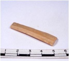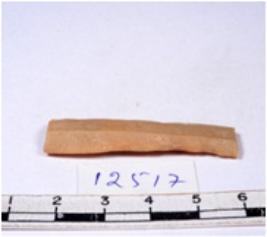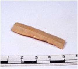 | Description / विवरण | A fragment of a rectangular shaped chert blade showing parallel sides with sharp cutting edges having smooth surface and uneven section. |
