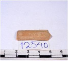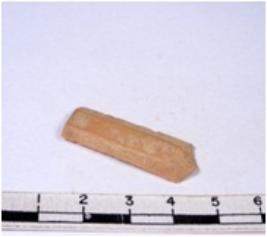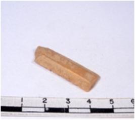 | Description / विवरण | A fragment of a rectangular shaped chert blade showing dorsal sides with sharp cutting edges having smooth surface and triangular section. |