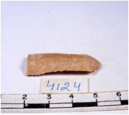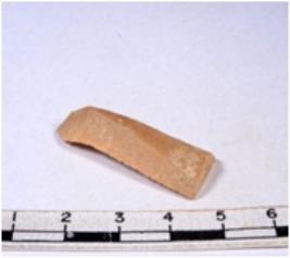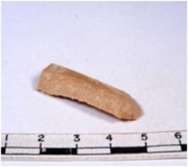 | Description / विवरण | A fragment of a rectangular shaped chert blade showing dorsal sides with sharp edges having smooth surface and triangular section. |