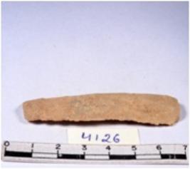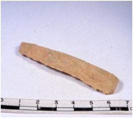 | Description / विवरण | A fragment of a rectangular shaped chert blade showing dorsal sides with sharp edges having smooth surface and triangular section. |