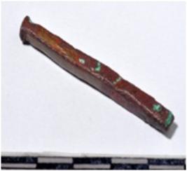 | Description / विवरण | A copper nail, having circular head, pointed other side of smooth surface. |