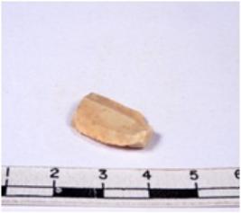| Description / विवरण | A fragment of a rectangular shaped chert blade showing dorsal sides with sharp edges having smooth surface and triangular section. |