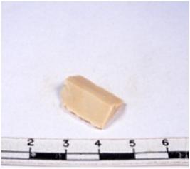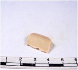 | Description / विवरण | A fragment of a rectangular shaped chert blade showing dorsal sides with sharp cutting edges having smooth surface and triangular section. |