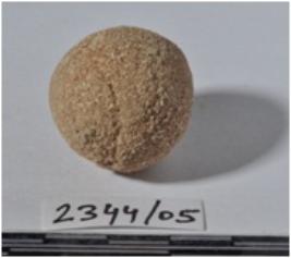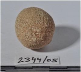 | Description / विवरण | A stone sling ball round in shape of rough surface. |