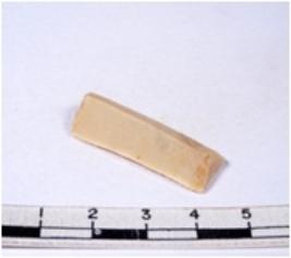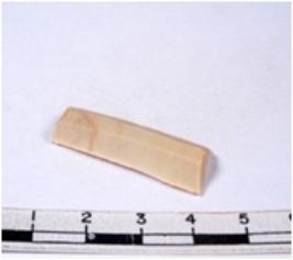| Description / विवरण | A fragment of a rectangular shaped chert blade showing dorsal sides with sharp edges having smooth surface and triangular section. |