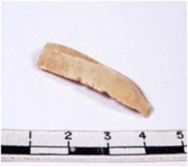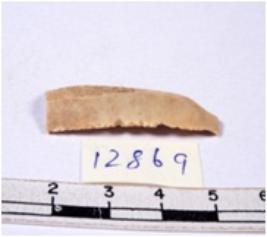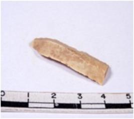 | Description / विवरण | A fragment of a rectangular shaped chert blade showing dorsal sides with sharp cutting edges having smooth surface and triangular section. |