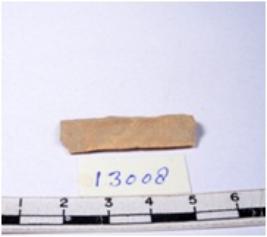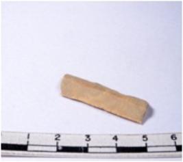 | Description / विवरण | A fragment of a rectangular shaped chert blade showing dorsal sides with sharp edges having smooth surface and triangular section. |