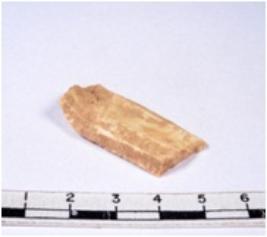 | Description / विवरण | A fragment of a rectangular shaped chert blade showing dorsal sides with sharp edges having smooth surface and triangular section. |