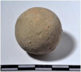 | Description / विवरण | A stone sling ball, round in shape of smooth surface. |