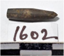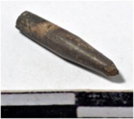 | Description / विवरण | A fragment of a stone drill bit circular in section broken from one end of smooth surface. |