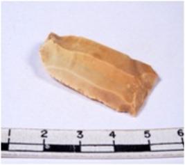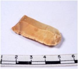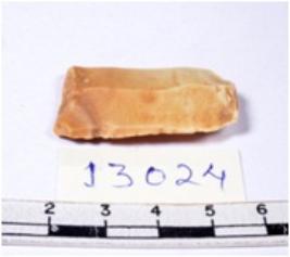 | Description / विवरण | A fragment of a rectangular shaped chert blade showing dorsal sides with sharp edges having smooth surface and triangular section. |
