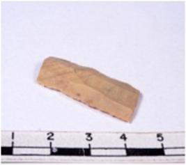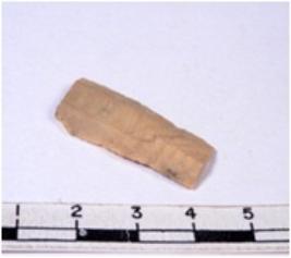 | Description / विवरण | A fragment of a rectangular shaped chert blade showing parallel sides with sharp edges having smooth surface and triangular section. |