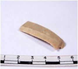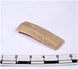 | Description / विवरण | A fragment of a rectangular shaped chert blade showing dorsal sides with sharp cutting edges having smooth surface and triangular section. |