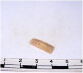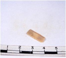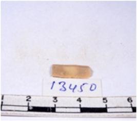 | Description / विवरण | A fragment of a rectangular shaped chert blade showing dorsal sides with sharp edges having smooth surface and triangular section. |