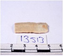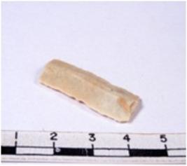 | Description / विवरण | A fragment of a rectangular shaped chert blade showing dorsal sides with sharp edges having smooth surface and triangular section. |