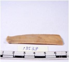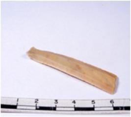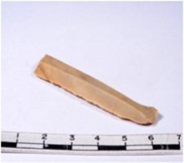 | Description / विवरण | A fragment of a rectangular shaped chert blade showing dorsal sides with sharp edges having smooth surface and triangular section. |