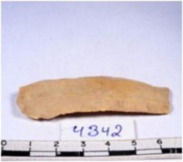 | Description / विवरण | A fragment of a rectangular shaped chert blade showing parallel sides with sharp edges having smooth surface and uneven section. |