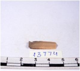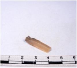 | Description / विवरण | A fragment of a rectangular shaped chert blade showing dorsal sides with sharp edges having smooth surface and triangular section. |