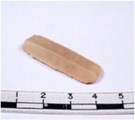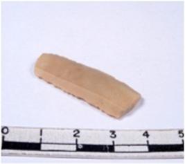 | Description / विवरण | A fragment of a rectangular shaped chert blade showing parallel sides with sharp edges having smooth surface and uneven section. |