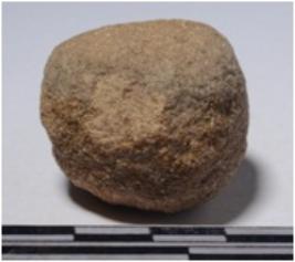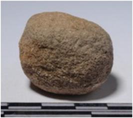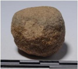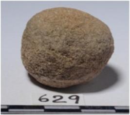 | Description / विवरण | A stone sling ball, round in shape of rough surface. |