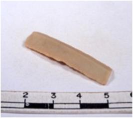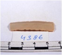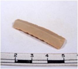 | Description / विवरण | A fragment of a rectangular shaped chert blade showing dorsal sides with sharp edges having smooth surface and triangular section. |