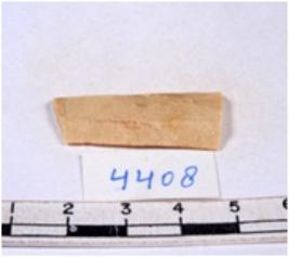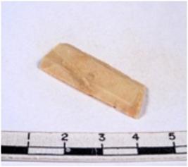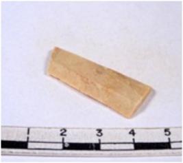 | Description / विवरण | A fragment of a rectangular shaped chert blade showing parallel sides with sharp edges having smooth surface and triangular section. |