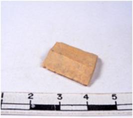 | Description / विवरण | A fragment of a rectangular shaped chert blade showing dorsal sides with sharp edges having smooth surface and triangular section. |