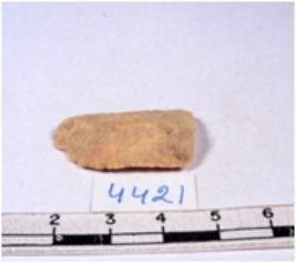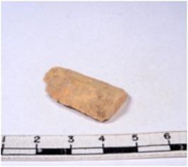 | Description / विवरण | A fragment of a rectangular shaped chert blade showing dorsal sides with sharp cutting edges having smooth surface and triangular section. |