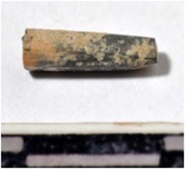 | Description / विवरण | A fragment of a stone drill bit circular in section, broken from both ends of rough surface. |