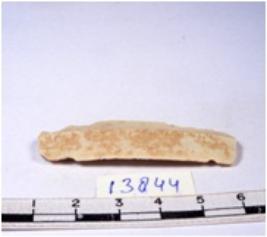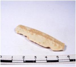 | Description / विवरण | A fragment of a rectangular shaped chert blade showing dorsal sides with sharp edges having smooth surface and triangular section. |