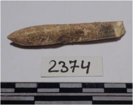 | Description / विवरण | A fragment of a bone point, having pointed one end, circular in section of rough surface. |