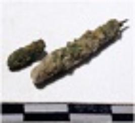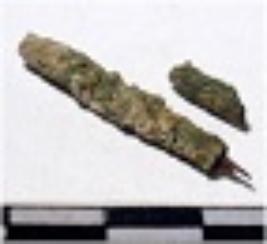 | Description / विवरण | A fragment of a copper nail pointed on end of rough surface. |