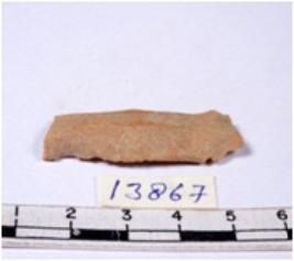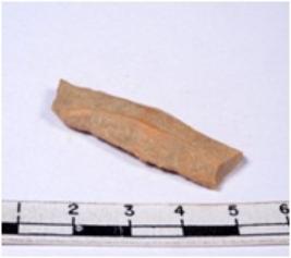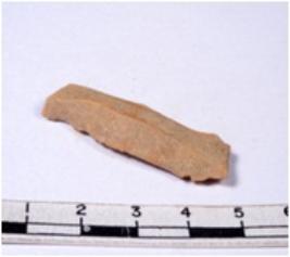 | Description / विवरण | A fragment of a rectangular shaped chert blade showing dorsal sides with sharp cutting edges having smooth surface and triangular section. |