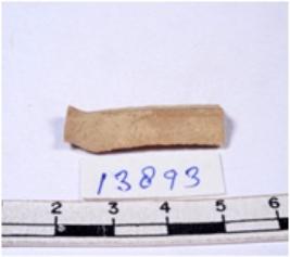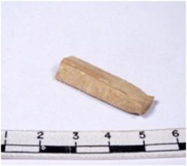| Description / विवरण | A fragment of a rectangular shaped chert blade showing dorsal sides with sharp edges having smooth surface and triangular section. |