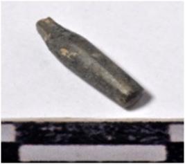 | Description / विवरण | A fragment of a stone drill bit, circular in section broken both end of smooth surface. |