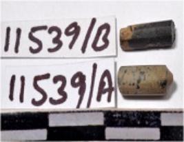 | Description / विवरण | A fragment of a stone drill bit, circular in section, broken from both end of smooth surface. |